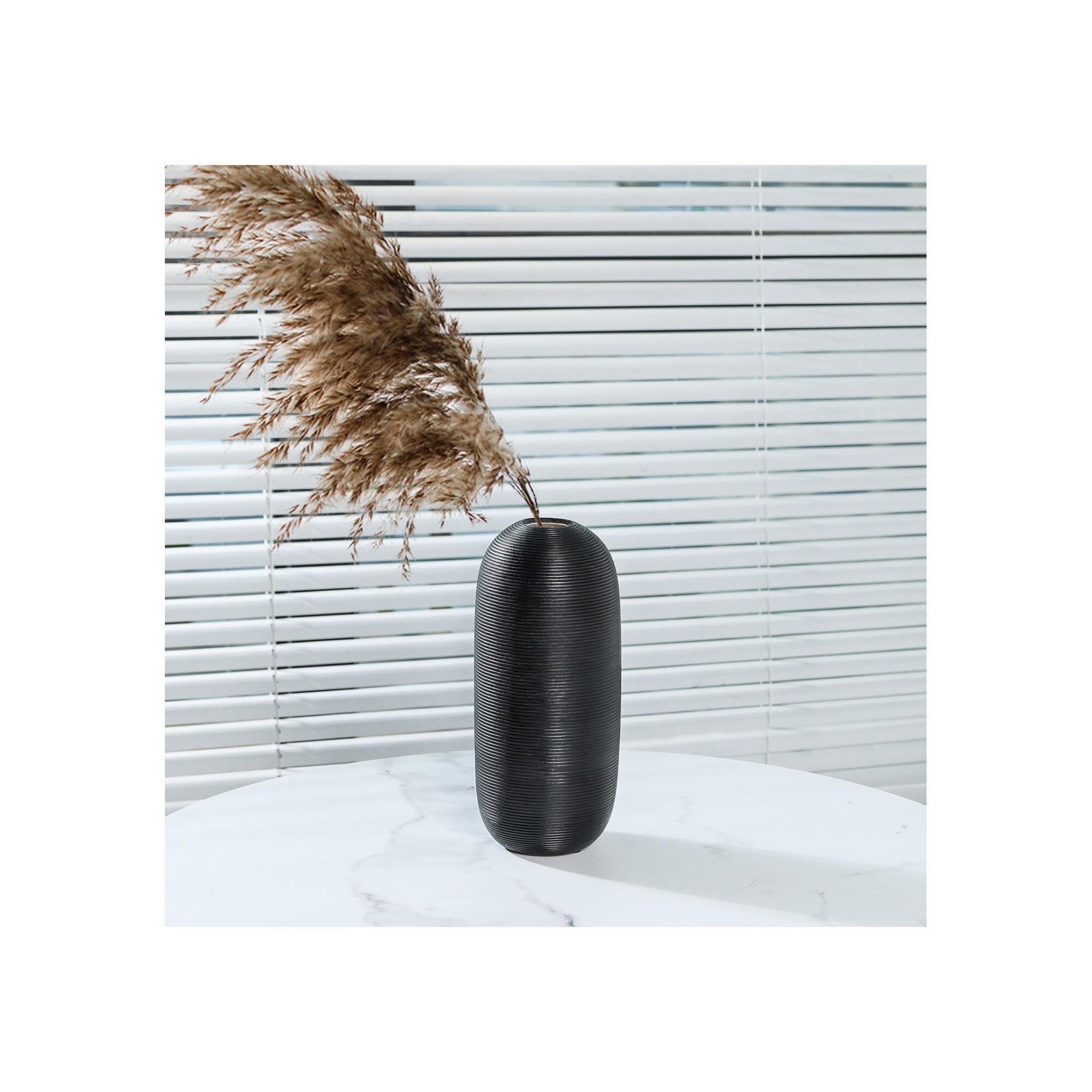 Декоративна керамична ваза с вертикални ивици, черна, 22x10 см